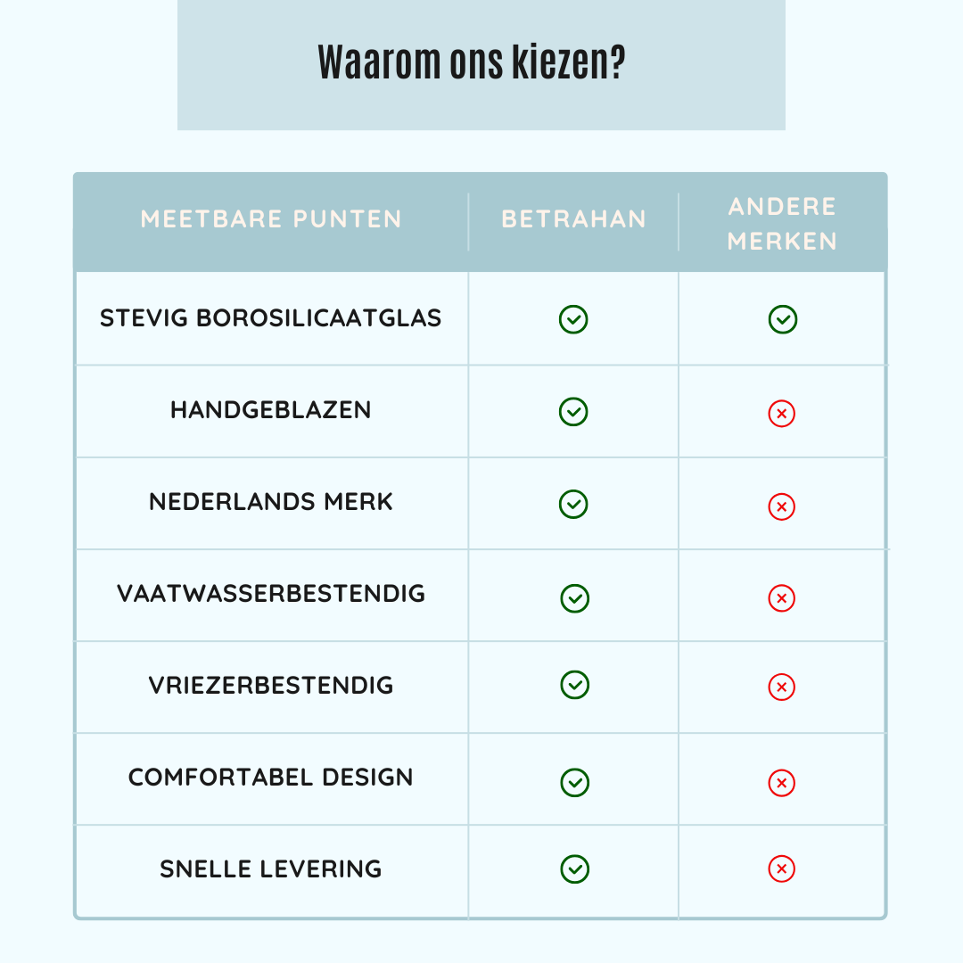 Super blij met mijn aankoop bij Betrahan. De glazen zijn licht maar toch stevig, en ze geven echt een luxe uitstraling aan mijn tafel.
