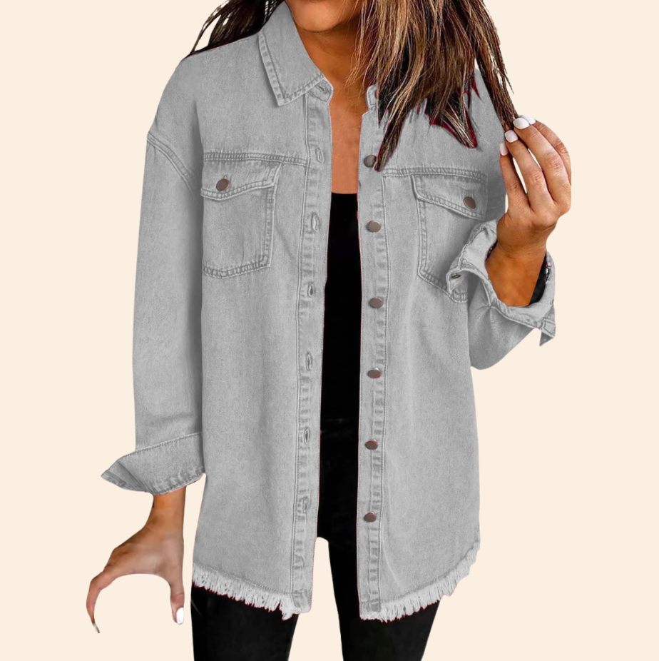 Zaktualizuj swoją garderobę o idealny element do warstwowego ubierania! Klasyczna codzienna kurtka dżinsowa Katja łączy ponadczasowy styl z luźnym krojem, co czyni ją niezbędnym elementem na każdą porę roku. Niezależnie od tego, czy ubierasz się elegancko, czy na luzie, ta kurtka jest Twoim wyborem na bezproblemową modę.